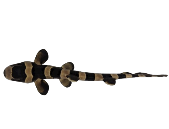 The Banded Cat Shark (Atelomycterus marmoratus) is a unique and captivating species known for its distinctive black and white striped pattern. This nocturnal shark is a peaceful and slow-moving addition to large saltwater aquariums, making it ideal for aquarists with ample space. As a bottom-dweller, it enjoys hiding in caves or crevices during the day, emerging at night to explore. A great choice for experienced hobbyists, the Banded Cat Shark adds both beauty and intrigue to a reef or fish-only aquarium.
