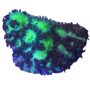 The Cyphastrea Bizarro is a stunning and unique LPS coral, known for its vibrant, multi-colored appearance and eye-catching patterns. This aquacultured coral features a mix of striking shades, including bright greens, blues, and purples, making it a standout piece in any reef aquarium. It thrives in moderate lighting and gentle water flow, and grows in a flat encrusting formation, creating a beautiful textured surface. The Cyphastrea Bizarro is relatively hardy and easy to care for, making it a great addition for both beginner and experienced aquarists. Its vivid colors and captivating patterns bring depth and vibrancy to any marine setup.