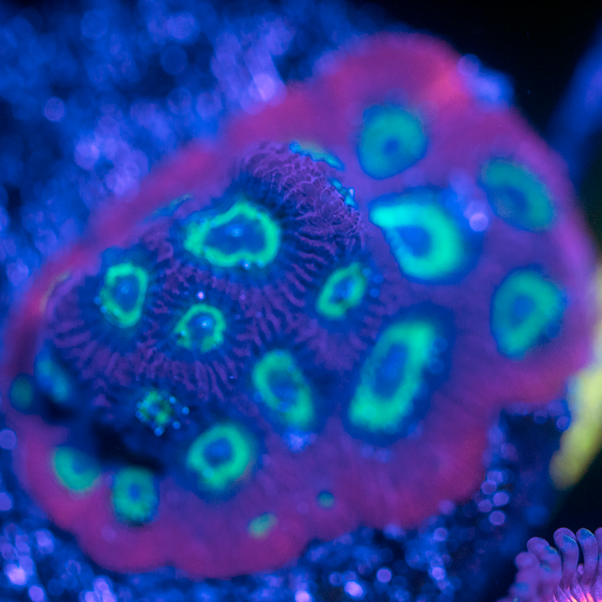 The Cyphastrea Peppermint is a stunning LPS coral with a vivid red base accented by bright green polyps, creating a striking candy-like appearance. This aquacultured coral grows in an encrusting pattern, making it perfect for adding texture and vibrant contrast to your reef aquarium. Thriving in moderate lighting and gentle water flow, the Peppermint Cyphastrea is hardy and low-maintenance, making it an excellent choice for aquarists of all experience levels. Its festive coloration and easy care requirements make it a beautiful and lively addition to any marine setup.