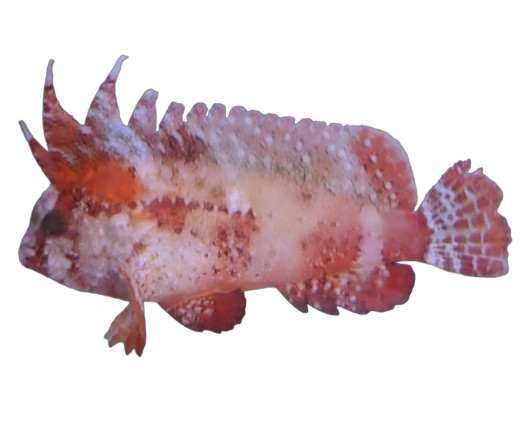 The Pygmy Waspfish is a small, uniquely camouflaged fish known for its flattened body and vibrant, reddish-brown color with white markings. It has a peaceful temperament and prefers to hide in crevices or under rocks, making it ideal for aquariums with plenty of hiding spaces. A fascinating and low-maintenance addition to reef tanks, it adds a touch of intrigue and natural beauty.