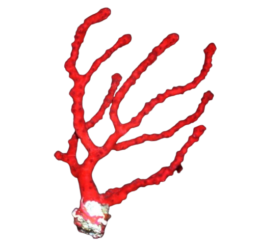 The Red Finger Gorgonian (Diodogorgia sp.) is a striking non-photosynthetic coral with bright red branches and white or yellow polyps. It requires moderate to strong water flow and regular feedings of planktonic foods. This delicate gorgonian adds vibrant color and dynamic movement to reef aquariums, making it a unique centerpiece.