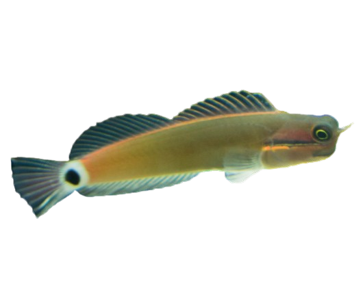 The Tailspot Blenny is a small, charming fish known for its vibrant appearance, with a distinctive black spot on its tail and a colorful body that ranges from brown to yellowish hues. This active and curious species is often found darting in and out of rock crevices, where it seeks shelter and hunts for small invertebrates. Tailspot Blennies are peaceful and make excellent additions to reef tanks, as they help control algae growth by grazing on algae. They are hardy and relatively easy to care for, but they prefer a well-established tank with plenty of hiding spaces. Their playful nature and unique looks make them a popular choice for marine aquariums.