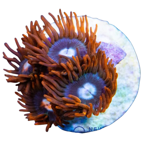 This stunning zoanthid variety showcases a fiery red-orange center surrounded by an icy blue ring, creating a mesmerizing contrast. Hardy and fast-growing, it thrives in moderate lighting and water flow, making it an excellent addition to any reef aquarium. Perfect for both beginners and experienced hobbyists!