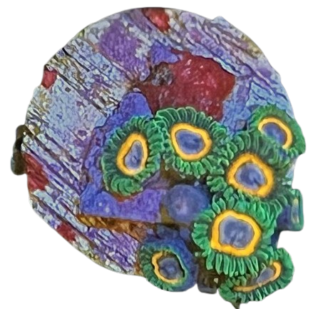 The Zoanthid Poker Face is a vibrant aquacultured coral, known for its striking patterns and bold colors. Its eye-catching appearance makes it a favorite for adding dramatic flair to reef aquariums. Hardy and easy to care for, this zoanthid thrives under a variety of lighting and water flow conditions, making it ideal for hobbyists of all levels. Perfect for building a stunning, colorful coral collection!